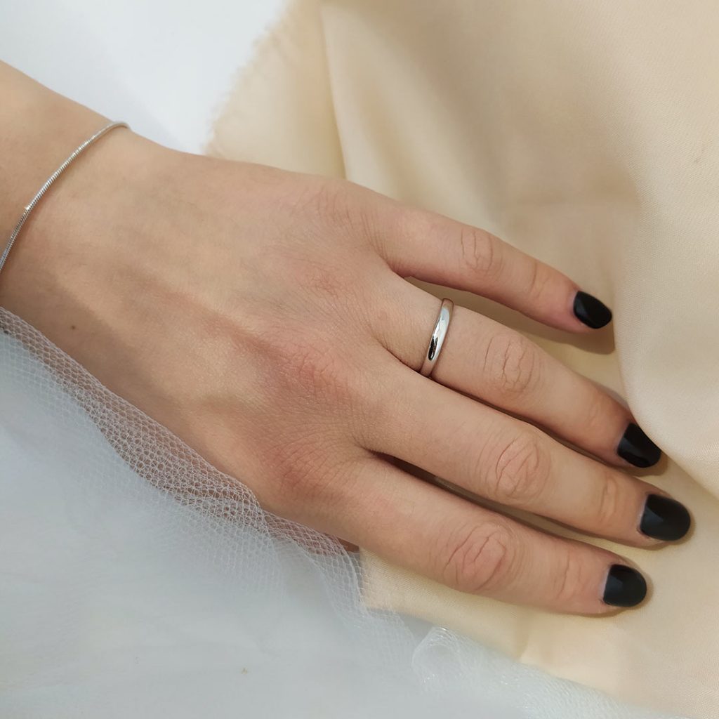 Обручальное кольцо под серебро с родиевым покрытием.