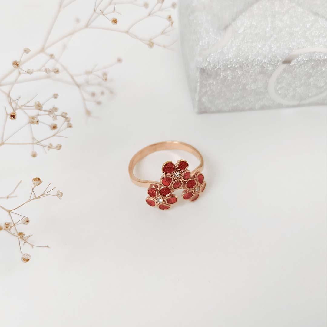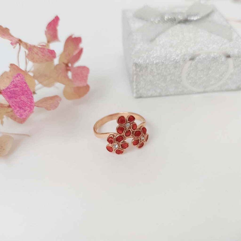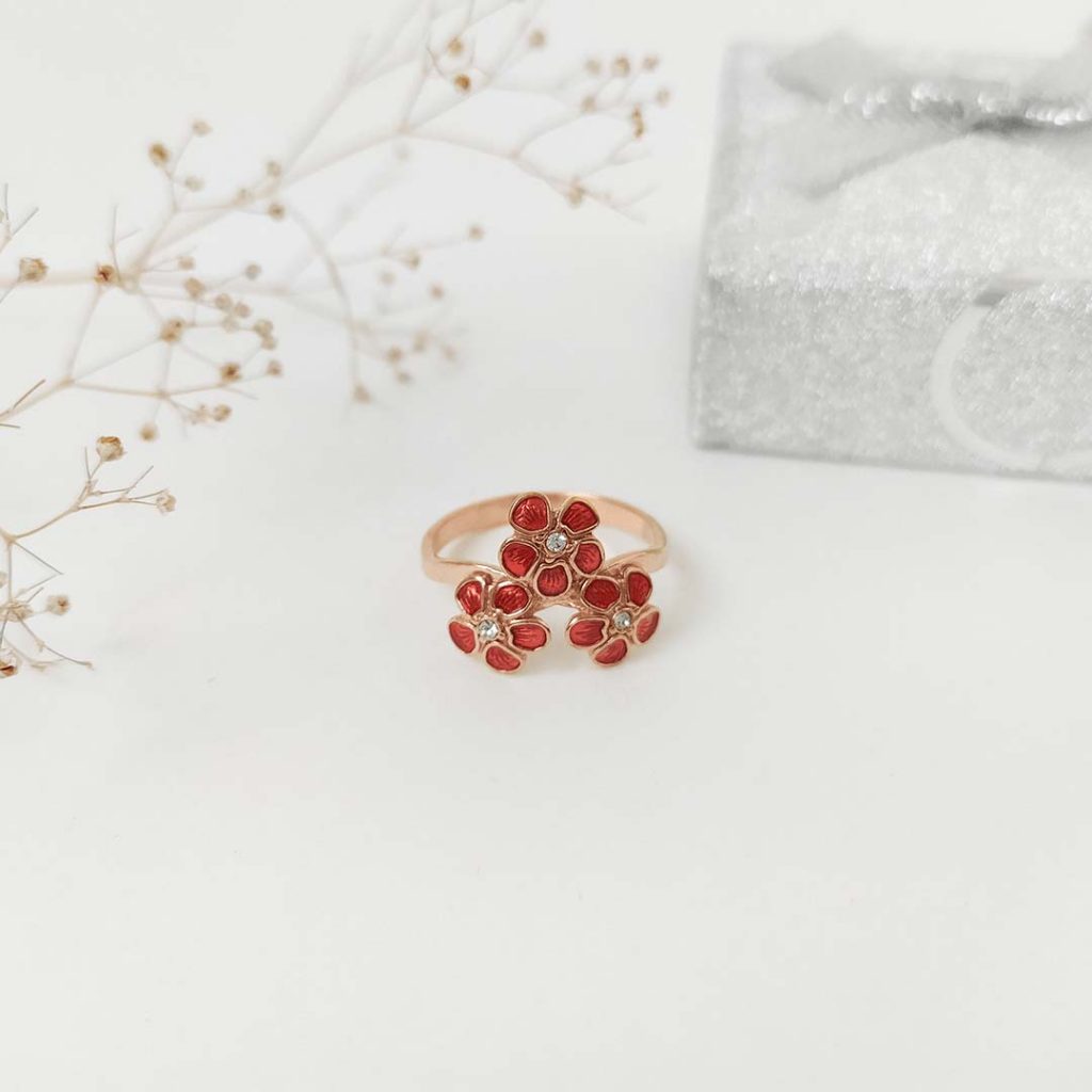 Позолоченное кольцо со вставками из ювелирного стекла и отделкой эмалью. Размеры 16,5 17,5 18.