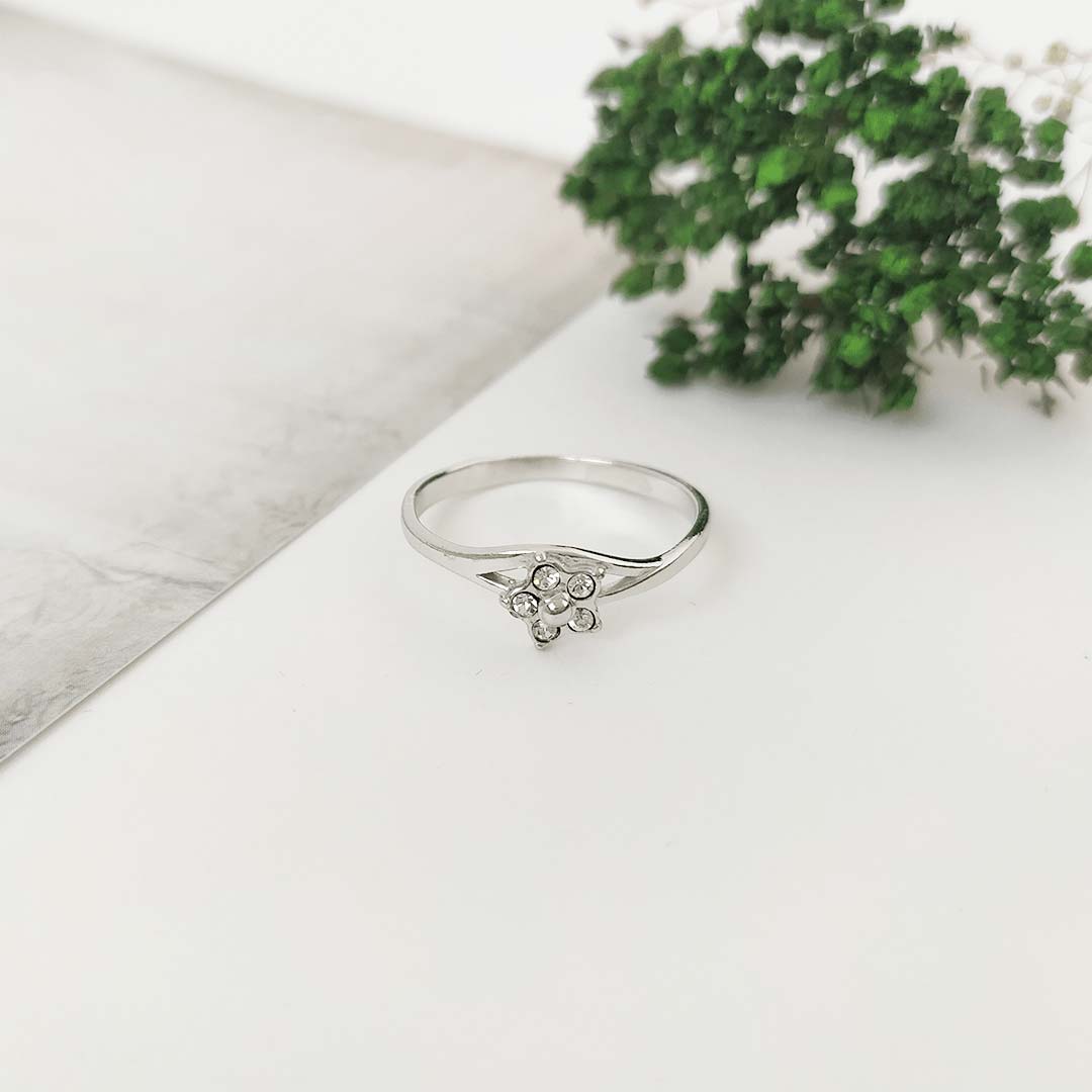 Кольцо, покрытое родием со вставкой из чешского стекла.