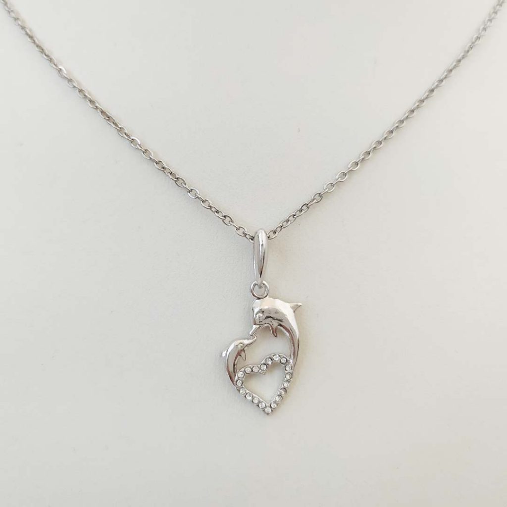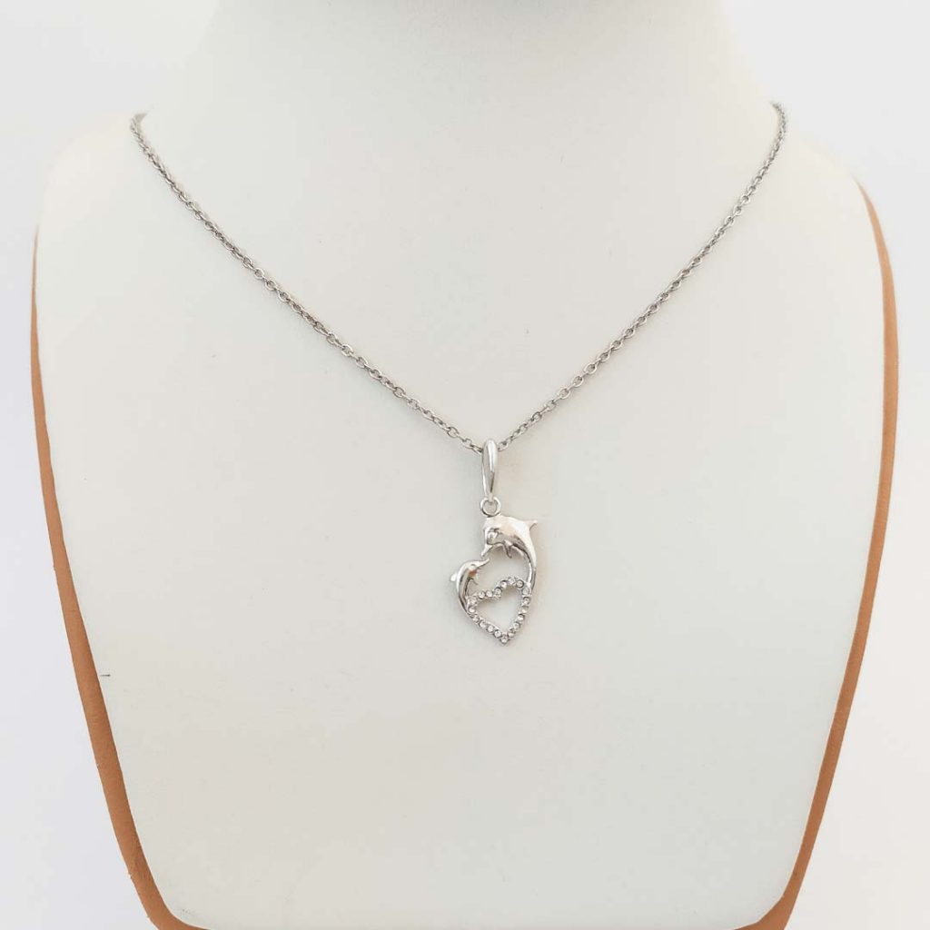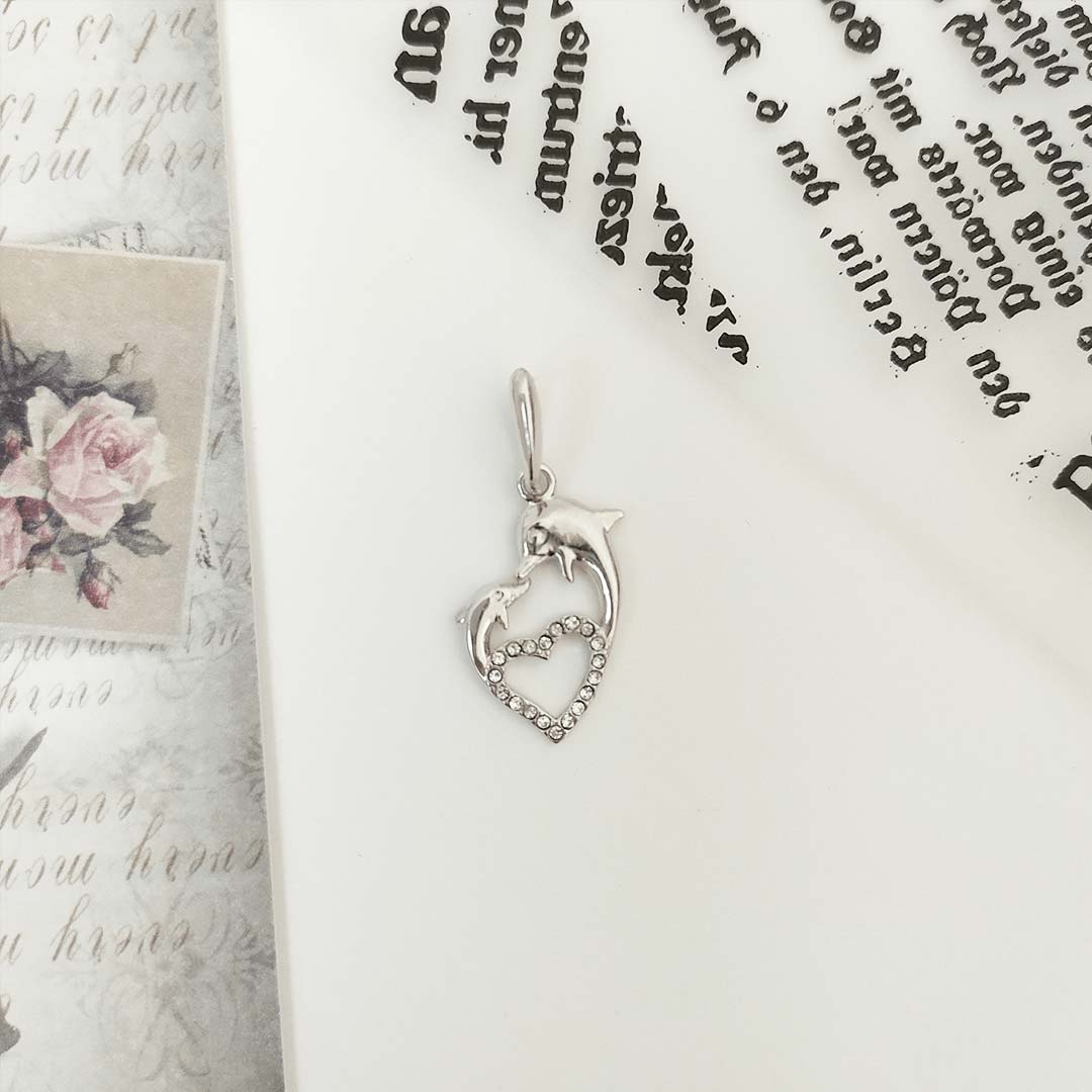 Родированная подвеска со вставками из ювелирного стекла. Без цепочки. Размер 27х11 мм.